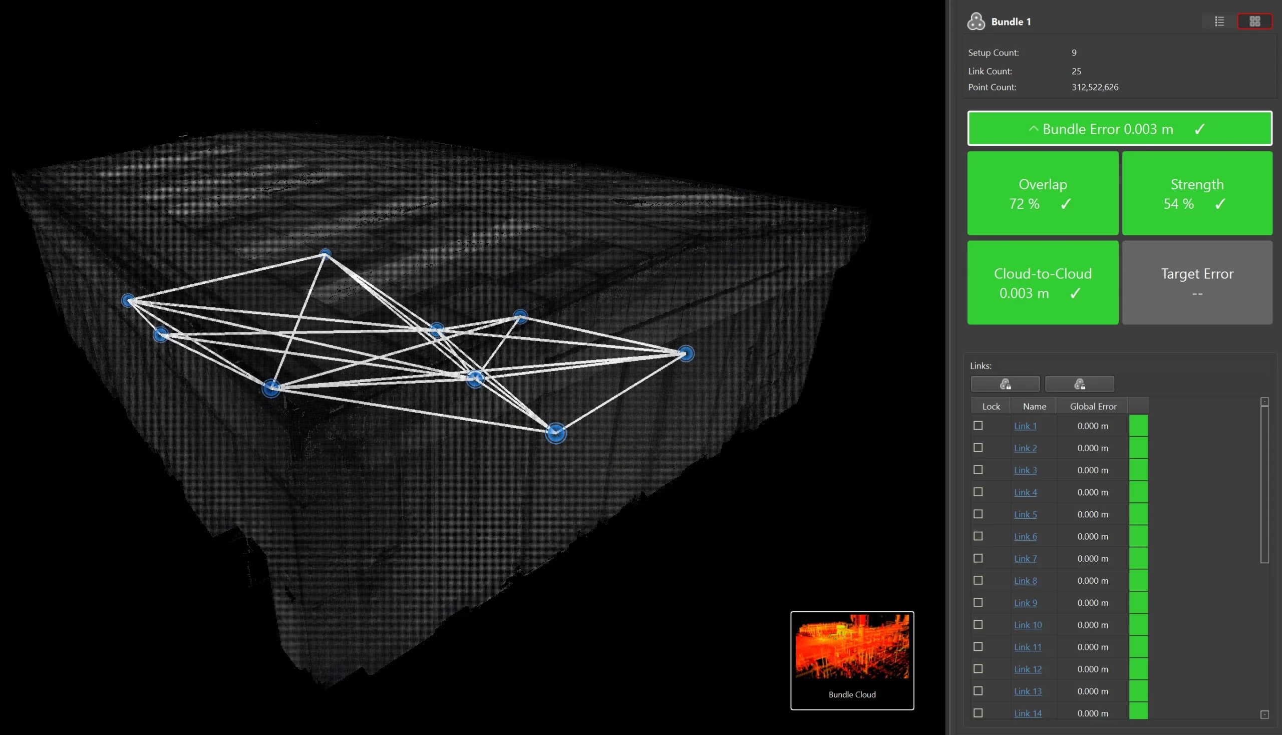 By using overlapping measurements, point clouds from multiple scan points can be combined into a single model from which wall thicknesses can be calculated and unnecessary items (like that pile of pallets that ‘might come in useful’) can be removed from the outputs. Even something as simple as a door frame can be used to align scans of the outside and inside of a building and generate accurate wall dimensions. This also comes in useful if you want to generate a virtual reality walkthrough of an area.